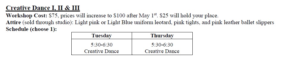Creative Dance II (5-6 yrs) Tuesdays 4:30pm-5:30pm